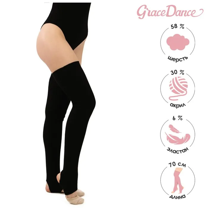 Гетры для гимнастики и танцев Grace Dance №1, длина 70 см, цвет чёрный — Характеристики