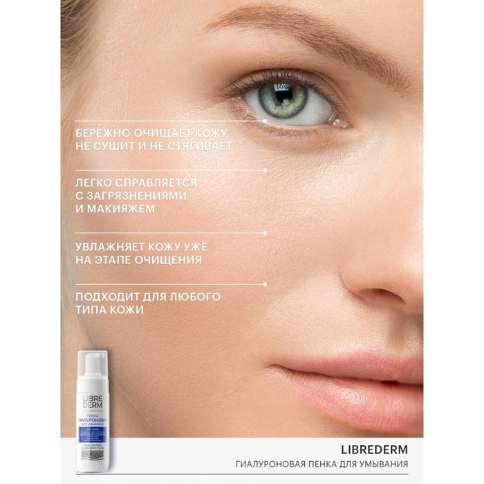 Нежная гиалуроновая пенка Librederm для умывания бережно очищает кожу, не сушит и не стягивает. Легко справляется с загрязнениями и подходит для снятия макияжа.