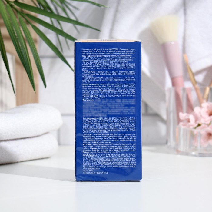 Гиалуроновый ВВ-крем ALL-in-ONE Librederm — инновационное многофункциональное косметическое средство, обеспечивающее полноценный уход за кожей и для макияжа. Этот уникальный крем мгновенно делает кожу красивой и сияющей без использования дополнительных косметических средств. Комплекс с низкомолекулярной гиалуроновой кислотой насыщает кожу влагой и оставляет длительное ощущение свежести. В качестве мощного питающего и защитного компонента в состав крема входит рыжиковое масло. Этот растительный продукт обладает целым комплексом природных элементов, оказывающих благотворное влияние на кожу. Большая концентрация в рыжиковом масле полиненасыщенных кислот (витамина F), «витаминов молодости» Е и А, фитостеролов и хлорофилла стимулирует клеточный обмен, предотвращает преждевременное появление на коже морщин и пигментных пятен, а также защищает кожу от старения, связанного с воздействием ультрафиолета или гормональными нарушениями. Крем обеспечивает продолжительный комфорт проблемной коже. Обладает лёгким тонирующим эффектом, который помогает придать коже естественное сияние и здоровый цвет без ощущения жирности и блеска.