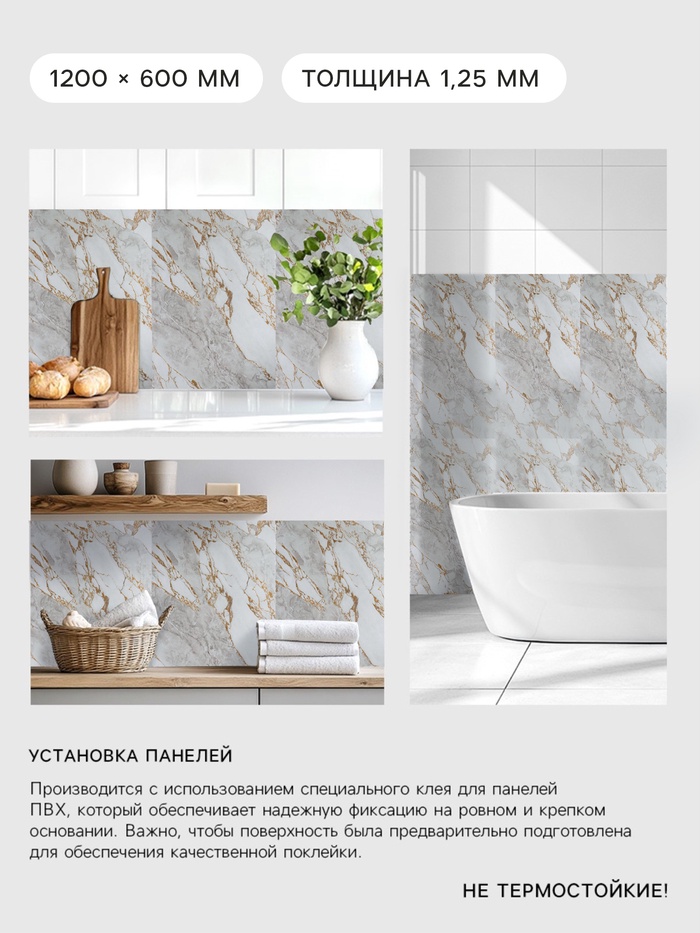 Панели Гибкий мрамор из ПВХ позволяют создать эффект натурального камня на стенах без сложного монтажа и тяжелого ухода. Материал устойчив к влаге и загрязнениям, легко моется и подходит для применения в кухнях, ванных комнатах и других помещениях с повышенной влажностью.