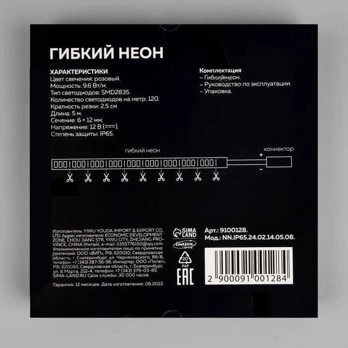 Гибкий неон Luazon Lighting 6 × 12 мм, IP65, 5 м, SMD2835, 120 LED/м, 12 В, свечение розовое — Характеристики