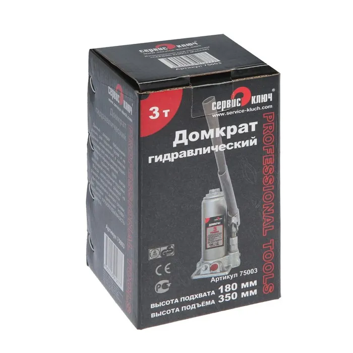 Гидравлический бутылочный домкрат СЕРВИС КЛЮЧ, 75003, высота 180 - 350 мм, 3 т — Характеристики