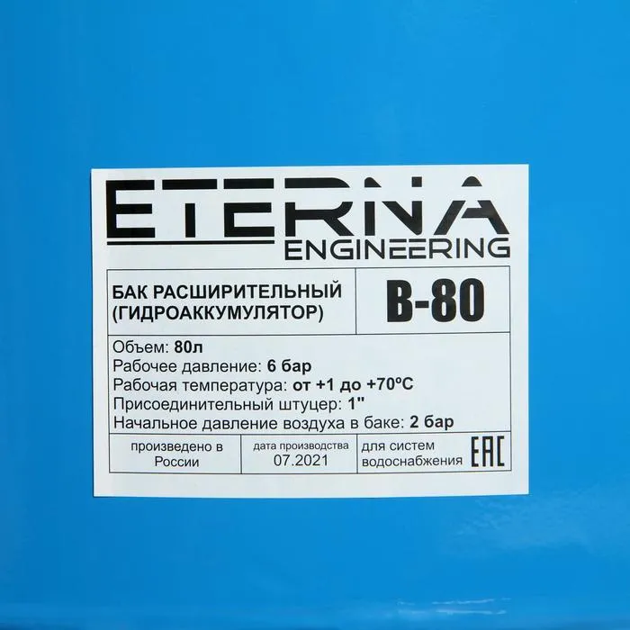 Гидроаккумулятор ETERNA В-80, для систем водоснабжения, нижнее подключение, 80 л — Характеристики