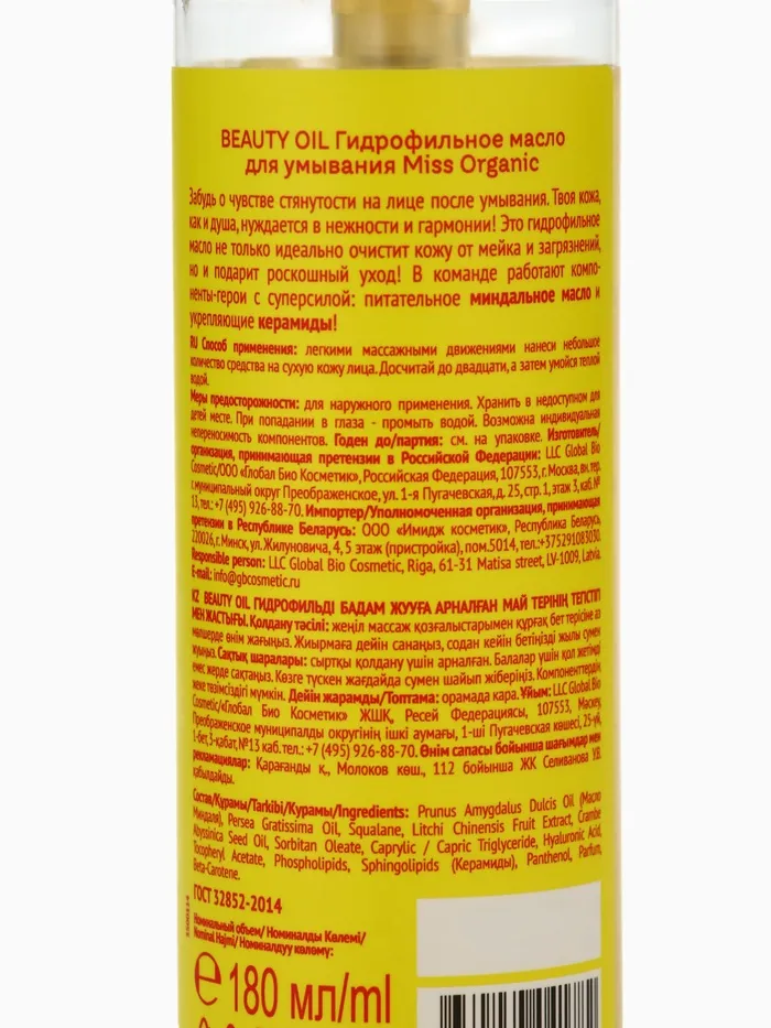 Состав: Prunus Amygdalus Dulcis Oil (Масло Миндаля), Persea Gratissima Oil, Squalane, Litchi Chinensis Fruit Extract, Crambe Abyssinica Seed Oil, Sorbitan Oleate, Caprylic / Capric Triglyceride, Hyaluronic Acid, Tocopheryl Acetate, Phospholipids, Sphingolipids (Керамиды), Panthenol, Parfum, Beta-Carotene.