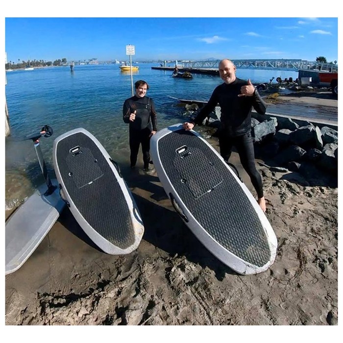 - Простая система plug and play («подключи и играй») подготовит вас к полёту за 15 минут. Установите батарею, мотор и крыло на доску. Подключите сопряжение с контроллером, и электрогидрофойл готов к использованию.