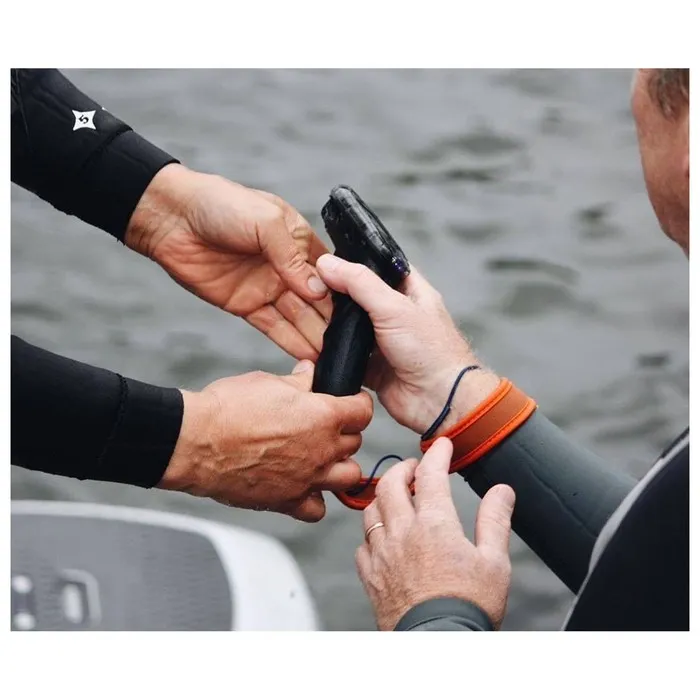 - Контроллер Waydoo Flyer прост в использовании: имеет кнопку включения, курок для регулировки тяги и кнопки переключения режимов. Стандарт защиты IP67 гарантирует ему водонепроницаемость даже при попадании в воду. Контроллер крепится к руке регулируемым ремешком.