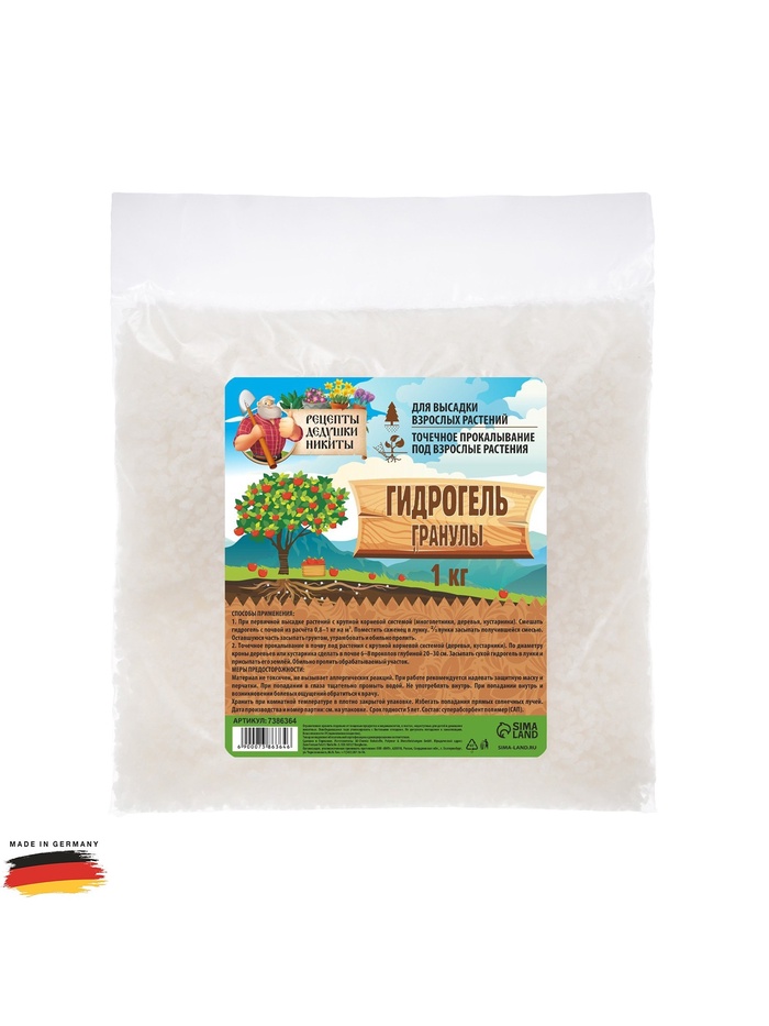 Гидрогель «Рецепты Дедушки Никиты», гранула, 1 кг — Характеристики