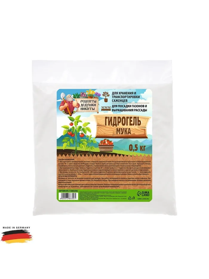 Гидрогель "Рецепты Дедушки Никиты", мука, 0.5 кг — Характеристики