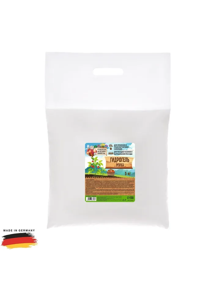 Гидрогель — это современный материал для накопления, удержания и последующей равномерной отдачи влаги. Гидрогель способен поглощать воду до 500 раз больше собственного веса. При смешивании гидрогеля с почвосмесью для комнатных и декоративных растений норма полива сокращается на 50–60 %, а при внесении в открытый грунт — на 20–40 %. Гидрогель не теряет своих свойств после полного высушивания и замерзания. По окончании срока годности гидрогель разлагается на углекислый газ, аммоний и воду.