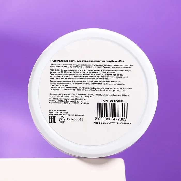 Гидрогелевые патчи с экстрактом голубики и коллагеном придадут сияние и упругость коже вокруг глаз. Патчи плотно прилегают к коже, наделяя её полезными веществами, входящими в состав. Гиалуроновая кислота и экстракт голубики увлажняют кожу, оказывая антиоксидантное и омолаживающее действие.