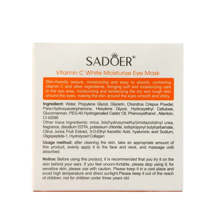 Гидрогелевые патчи с витамином С придадут сияние и упругость коже вокруг глаз. Патчи плотно прилегают к коже, наделяя её полезнми веществами, входящими в состав. Частицы коллоидного золота, которые входят в состав обладают успокаивающим и восстанавливающим действием. Коллоидное золото эффективно борется с пигментными пятнами и значительно увеличивает эластичность и упругость кожи. Витамин С в стабильной форме обладает свойством, которое подавляет выработку меланина вашей кожей, в первую очередь предотвращая образование темных пятен. Коллаген обеспечивает восстановление нормального уровня увлажнённости кожи и улучшает процессы регенерации, а комплекс витаминов осветляет и улучшает метаболизм кожи вокруг глаз. Гиалуроновая кислота оказывает подтягивающее действие, выравнивая мелкие морщины и уменьшая отечность. Средство подходит для сухой кожи.