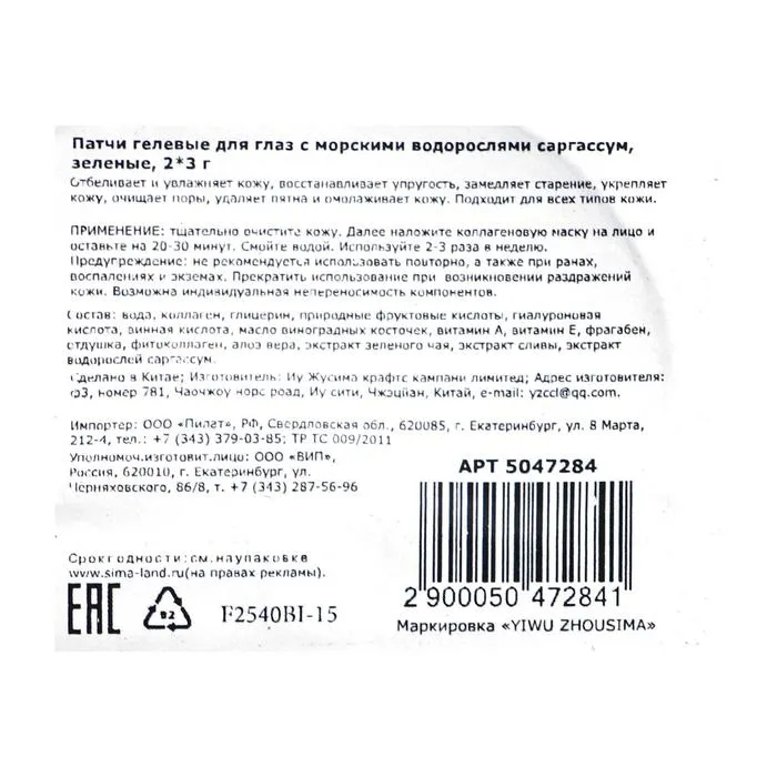 Гидрогелевые патчи на основе морских водорослей плотно прилегают к коже, наделяя её полезными веществами, входящими в состав. Они борются с отечность, делают темные круги менее выраженными, напитывают кожу влагой и наполняют её витаминами, а также подтягивают кожу вокруг глаз.