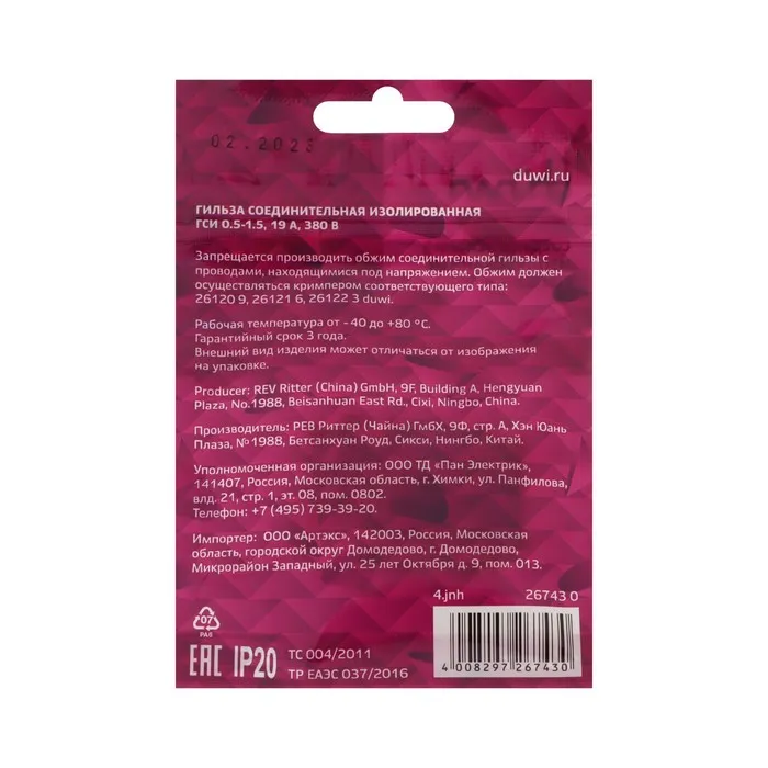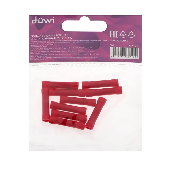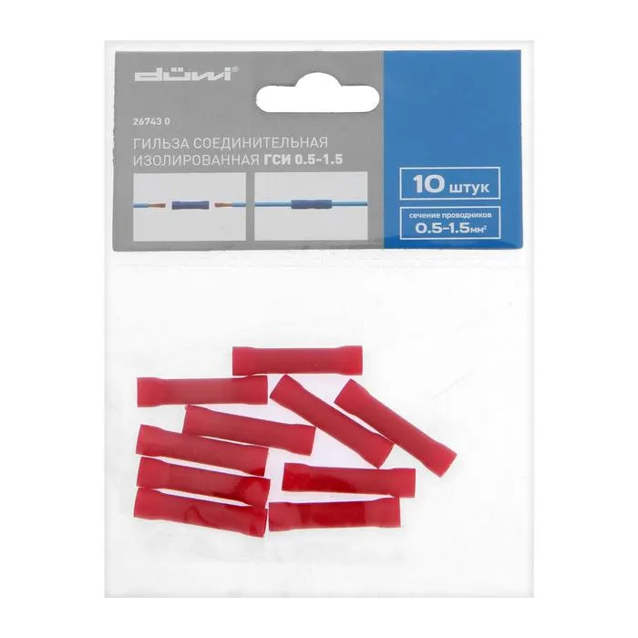 Гильза соединительная изолированная düwi ГСИ, 0.5-1.5, 10 шт. — Характеристики
