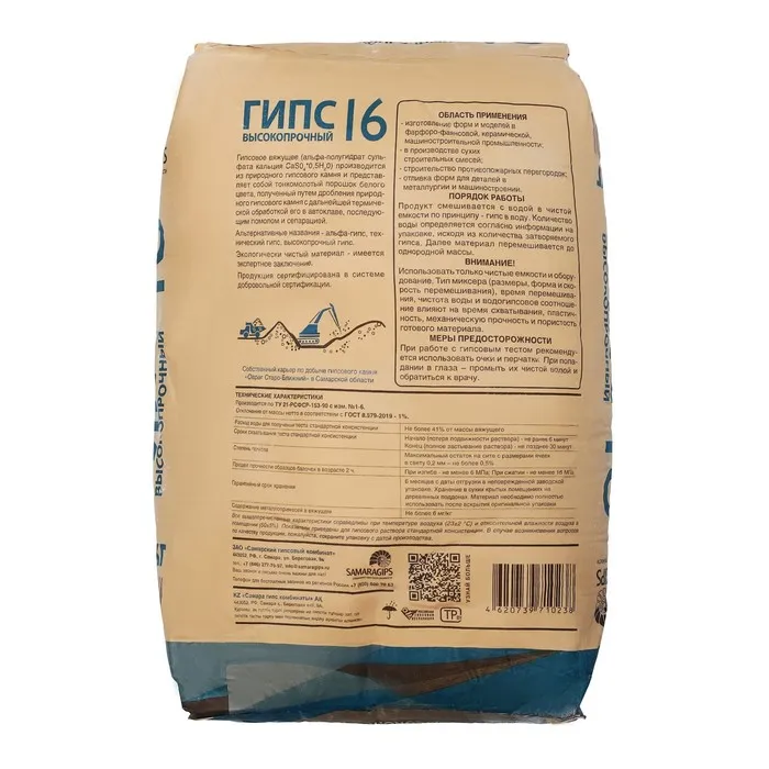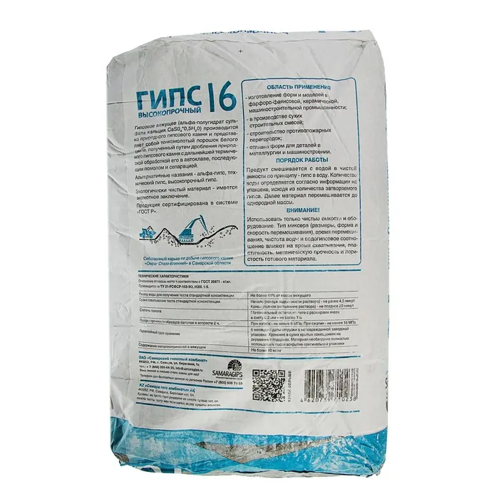Гипс высокопрочный ГВВС-16 SAMARAGIPS, 40 кг — Характеристики