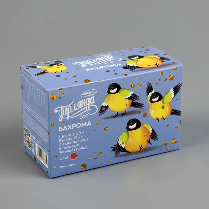 Гирлянда «Бахрома» 1.8 х 0.5 м, IP20, тёмная нить, 48 LED, свечение красное, 8 режимов, 220 В — Характеристики