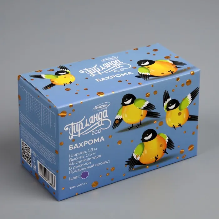 Гирлянда «Бахрома» 1.8 × 0.5 м, IP20, прозрачная нить, 48 LED, свечение фиолетовое, 8 режимов, 220 В — Характеристики