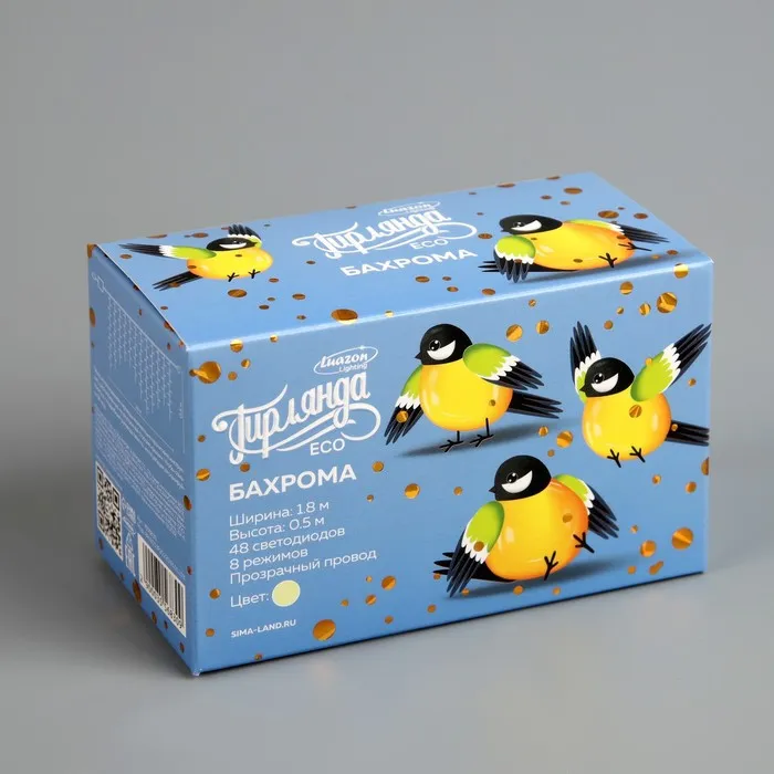 Гирлянда «Бахрома» 1.8 × 0.5 м, IP20, прозрачная нить, 48 LED, свечение тёплое белое, 8 режимов, 220 В — Характеристики