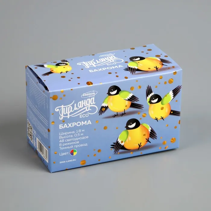 Гирлянда «Бахрома» 1.8 × 0.5 м, IP20, тёмная нить, 48 LED, свечение мульти, 8 режимов, 220 В — Характеристики