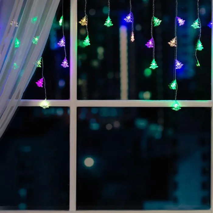 Гирлянда «Бахрома» 1.8 × 0.5 м с насадками «Ёлки», IP20, прозрачная нить, 48 LED, свечение мульти (RG/RB), мигание, 220 В — Характеристики