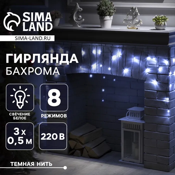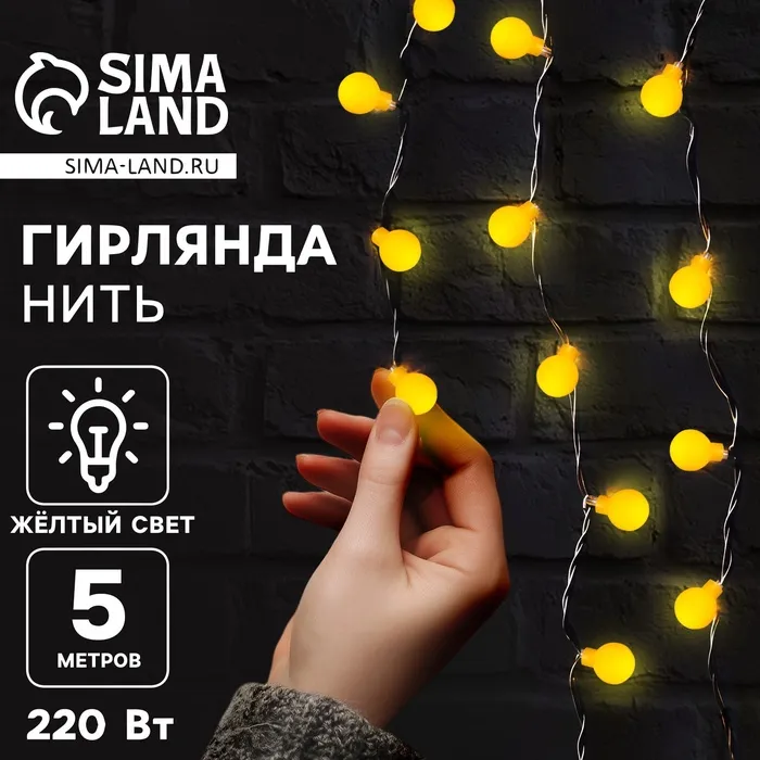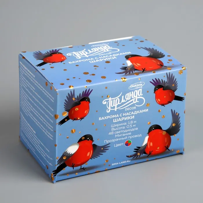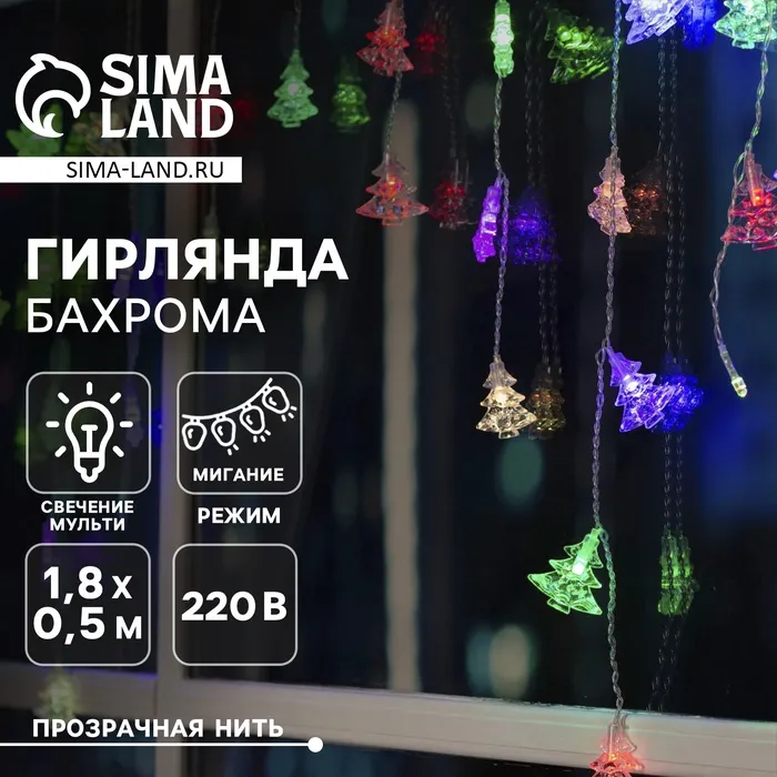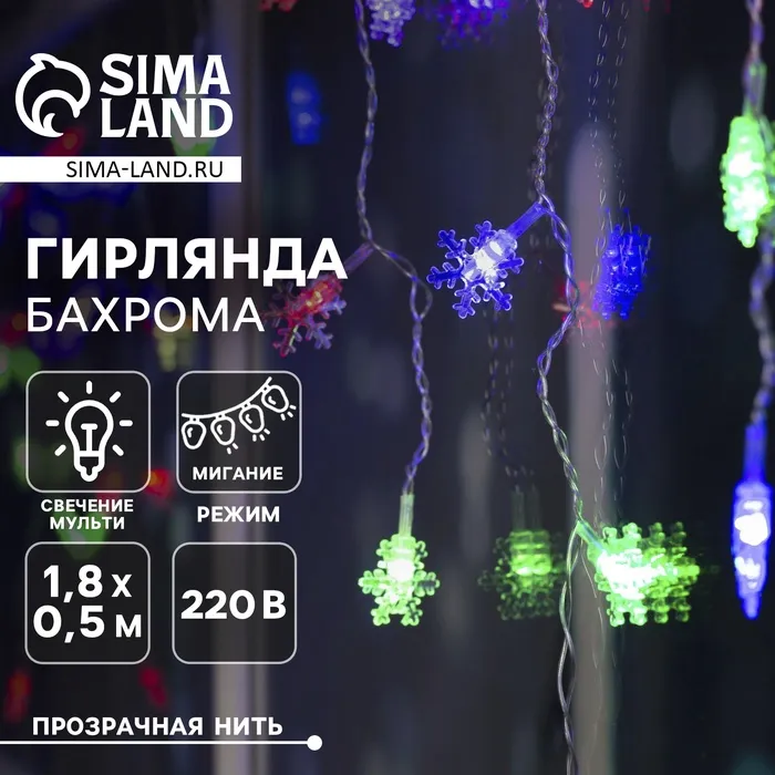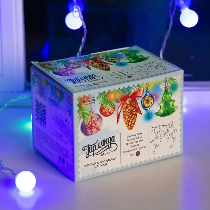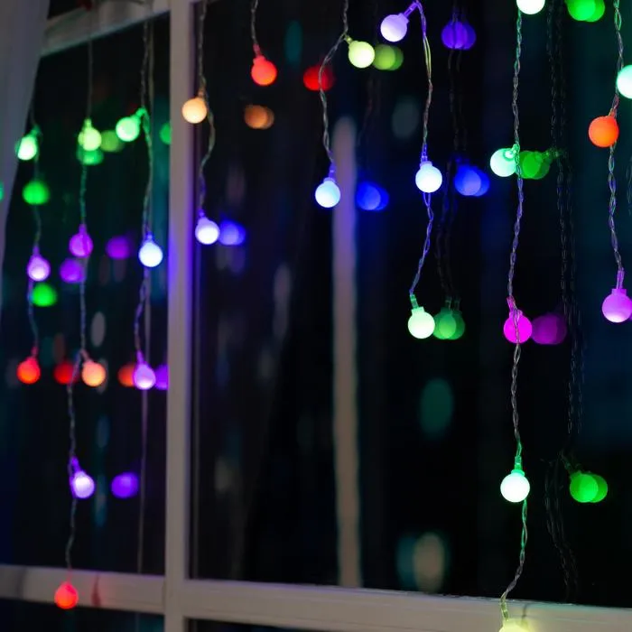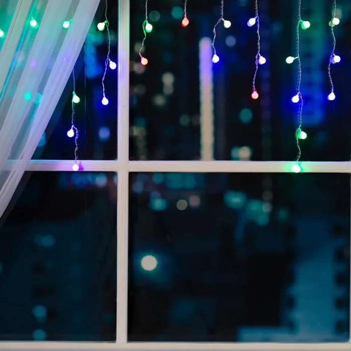 Гирлянда «Бахрома» 1.8 × 0.5 м с насадками «Шарики», IP20, прозрачная нить, 48 LED, свечение мульти (RG/RB), мигание, 220 В — Характеристики