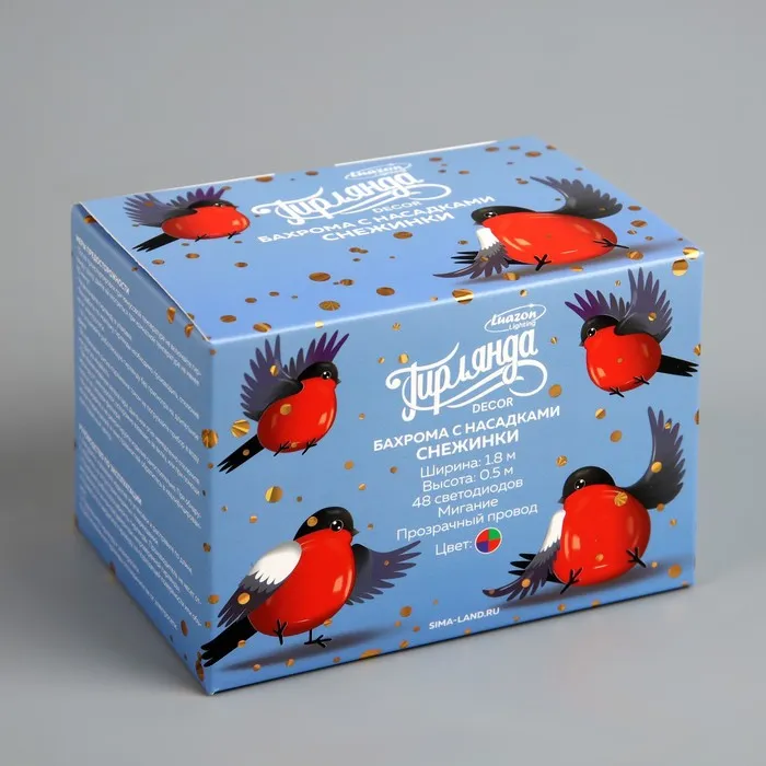 Гирлянда «Бахрома» 1.8 × 0.5 м с насадками «Снежинки», IP20, прозрачная нить, 48 LED, свечение мульти (RG/RB), мигание, 220 В — Характеристики
