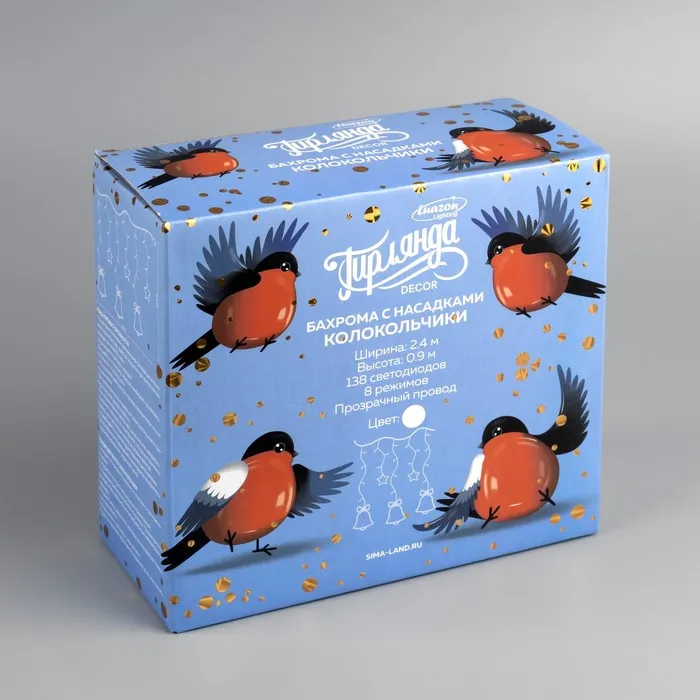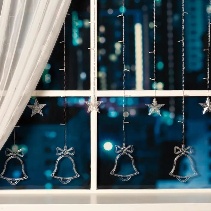 Гирлянда «Бахрома» 2.4 × 0.9 м с насадками «Колокольчики», IP20, прозрачная нить, 138 LED, свечение белое, 8 режимов, 220 В — Характеристики