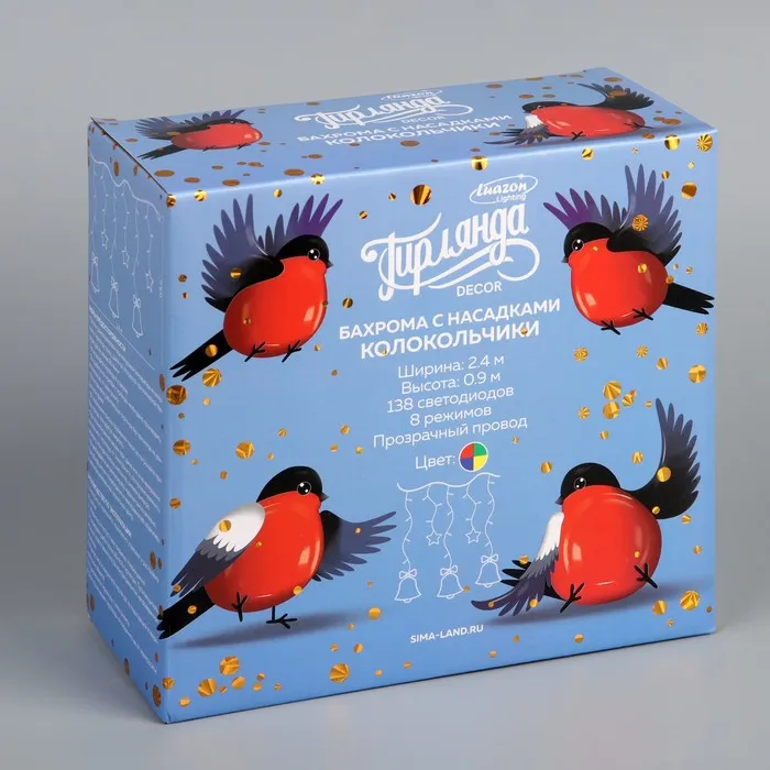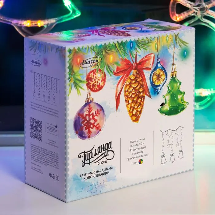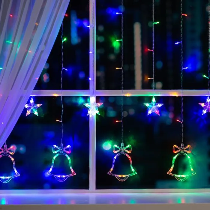 Гирлянда «Бахрома» 2.4 × 0.9 м с насадками «Колокольчики», IP20, прозрачная нить, 138 LED, свечение мульти, 8 режимов, 220 В — Характеристики