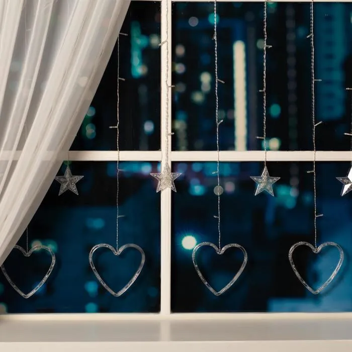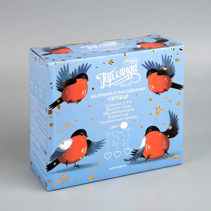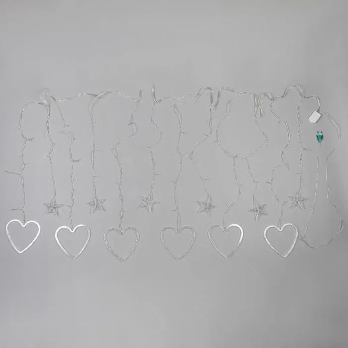 Гирлянда «Бахрома» 2.4 × 0.9 м с насадками «Сердце», IP20, прозрачная нить, 186 LED, свечение белое, 8 режимов, 220 В — Характеристики
