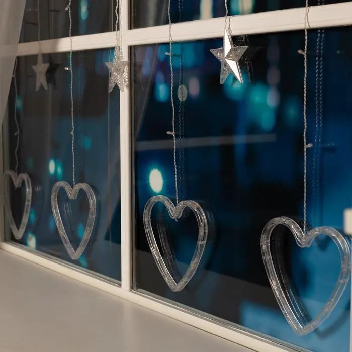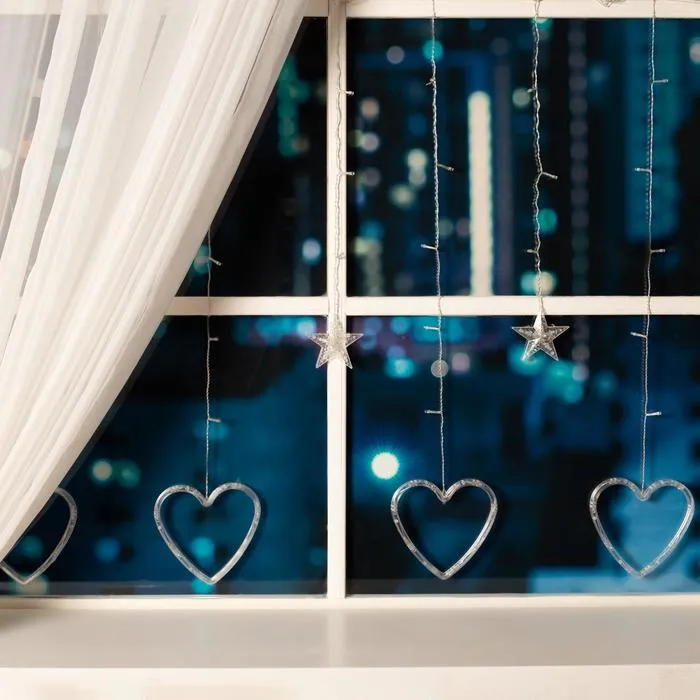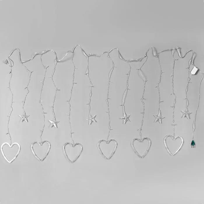 Гирлянда «Бахрома» 2.4 × 0.9 м с насадками «Сердце», IP20, прозрачная нить, 186 LED, свечение тёплое белое, 8 режимов, 220 В — Характеристики