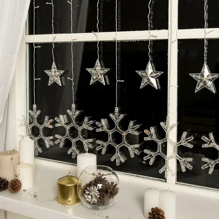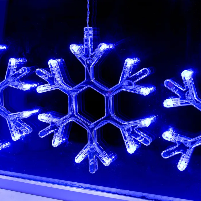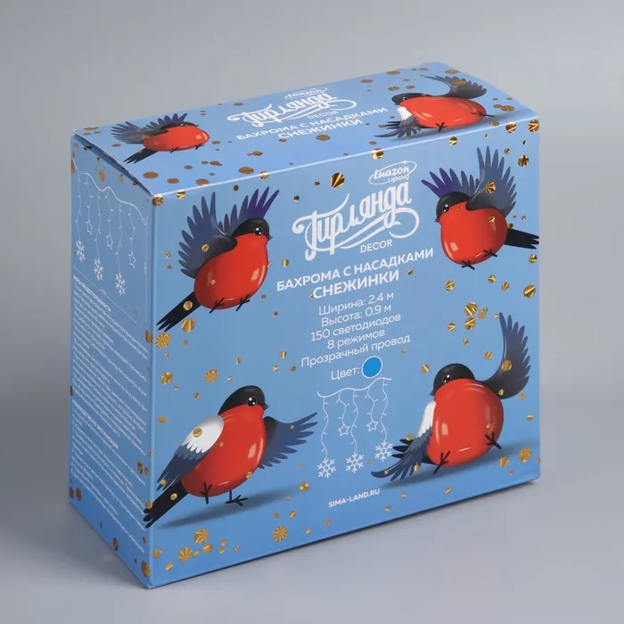 Гирлянда «Бахрома» 2.4 × 0.9 м с насадками «Снежинки», IP20, прозрачная нить, 150 LED, свечение синее, 8 режимов, 220 В — Характеристики