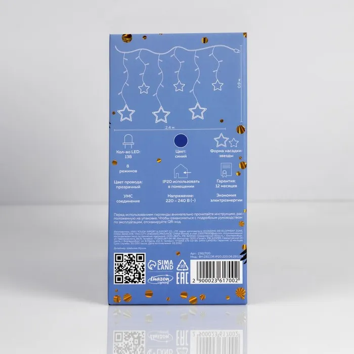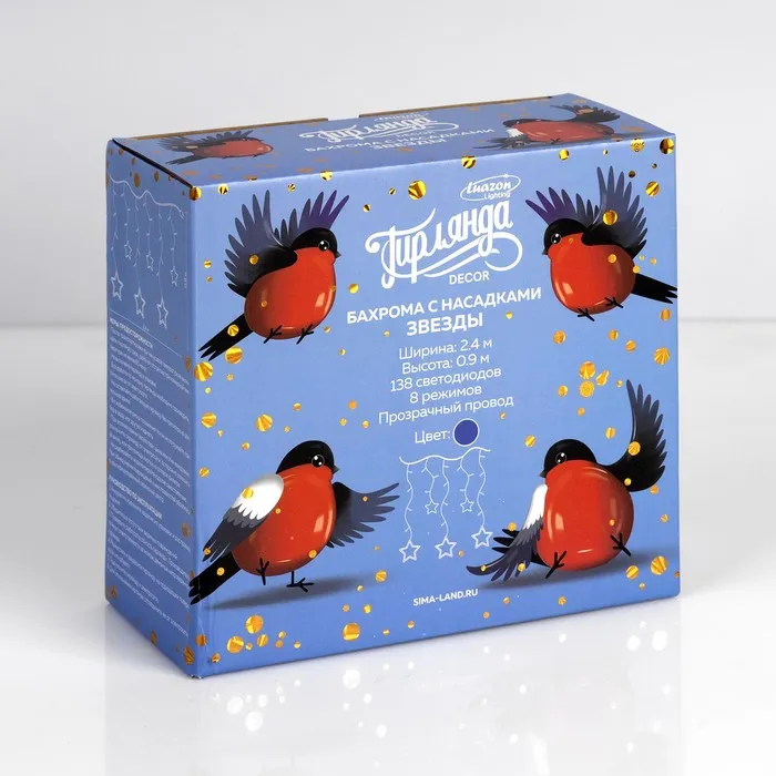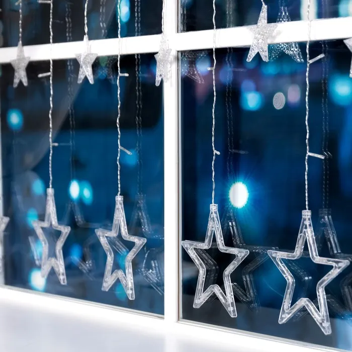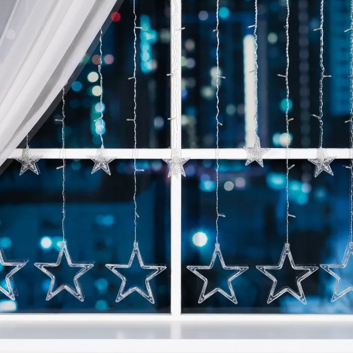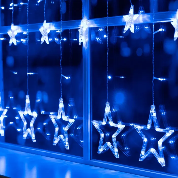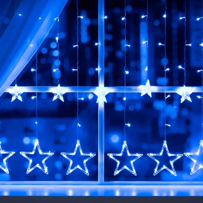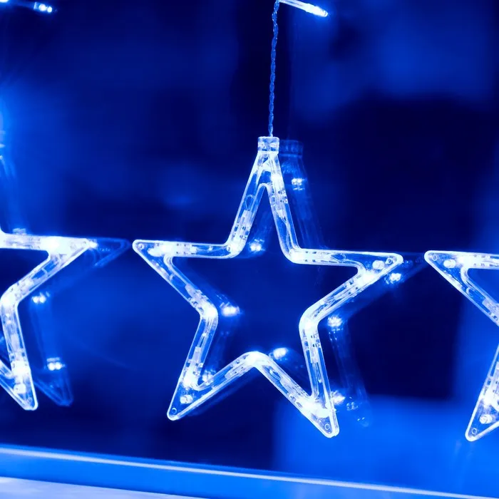 Гирлянда «Бахрома» 2.4 × 0.9 м с насадками «Звёзды», IP20, прозрачная нить, 138 LED, свечение синее, 8 режимов, 220 В — Характеристики