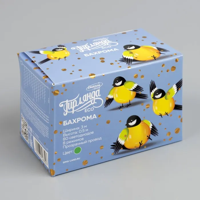 Гирлянда «Бахрома» 3 х 0.5 м, IP20, прозрачная нить, 80 LED, свечение зелёное, 8 режимов, 220 В — Характеристики