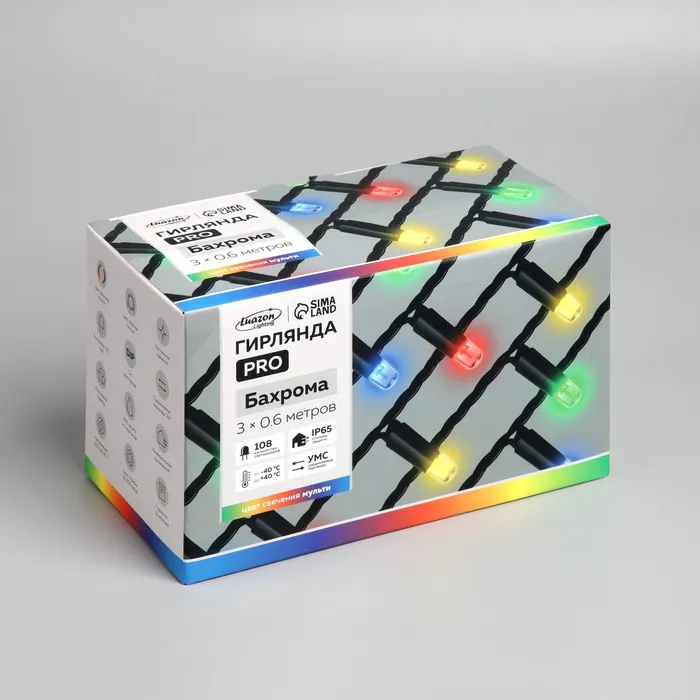 Гирлянда "Бахрома" 3 х 0.6 м , IP65, УМС, тёмная нить каучук, 108 LED, свечение мульти, 220 В — Характеристики