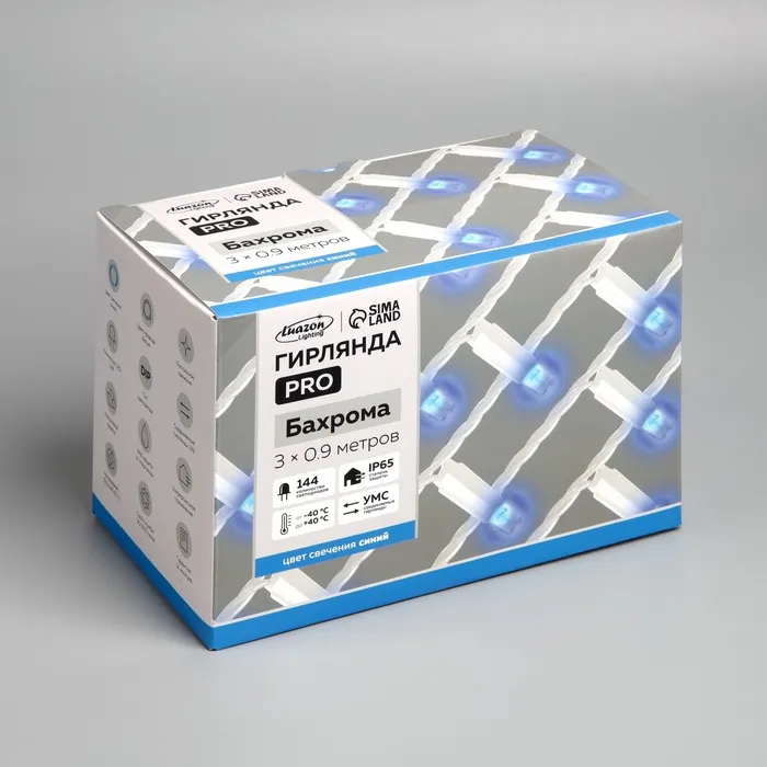 Гирлянда "Бахрома" 3 х 0.9 м , IP65, УМС, белая нить каучук, 144 LED, свечение синее, 220 В — Характеристики