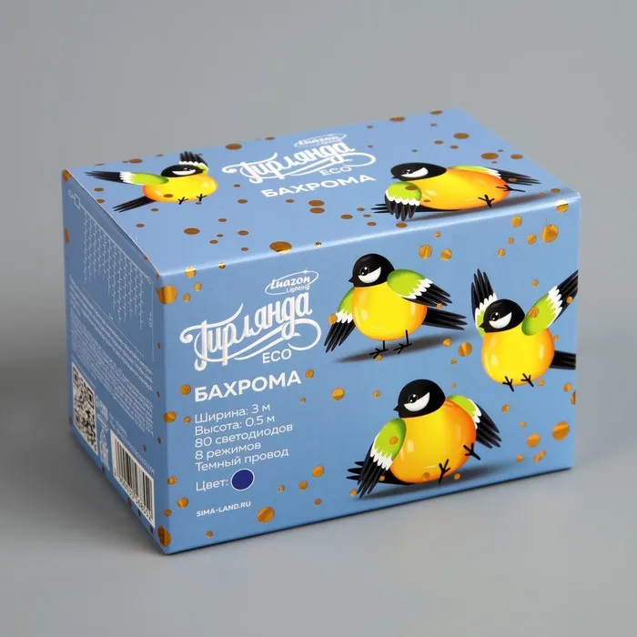Гирлянда «Бахрома» 3 × 0.5 м, IP20, тёмная нить, 80 LED, свечение синее, 8 режимов, 220 В — Характеристики