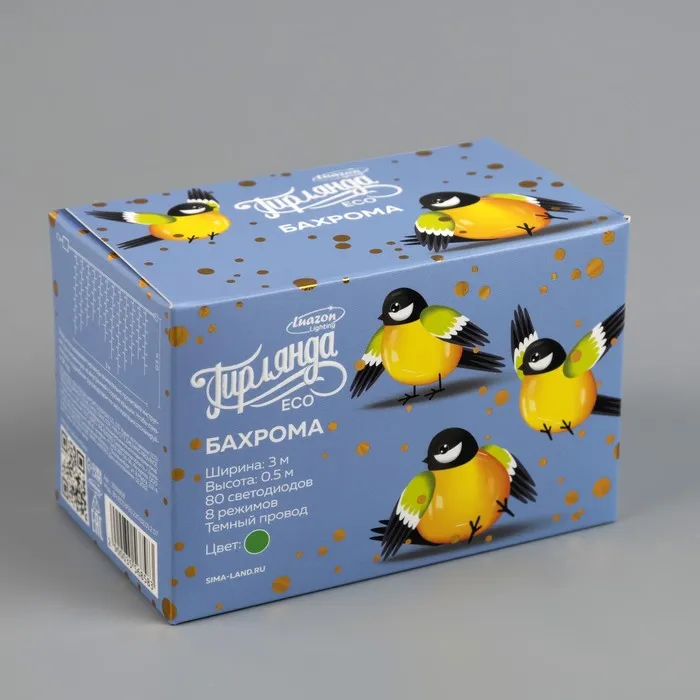 Гирлянда «Бахрома» 3 × 0.5 м, IP20, тёмная нить, 80 LED, свечение зелёное, 8 режимов, 220 В — Характеристики