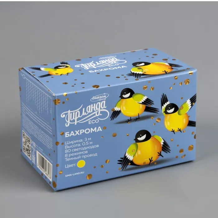 Гирлянда «Бахрома» 3 × 0.5 м, IP20, тёмная нить, 80 LED, свечение жёлтое, 8 режимов, 220 В — Характеристики