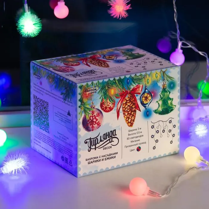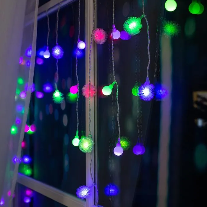 Гирлянда «Бахрома» 3 × 0.5 м с насадками «Шарики и ёжики», IP20, прозрачная нить, 80 LED, свечение мульти (RG/RB), мигание, 220 В — Характеристики