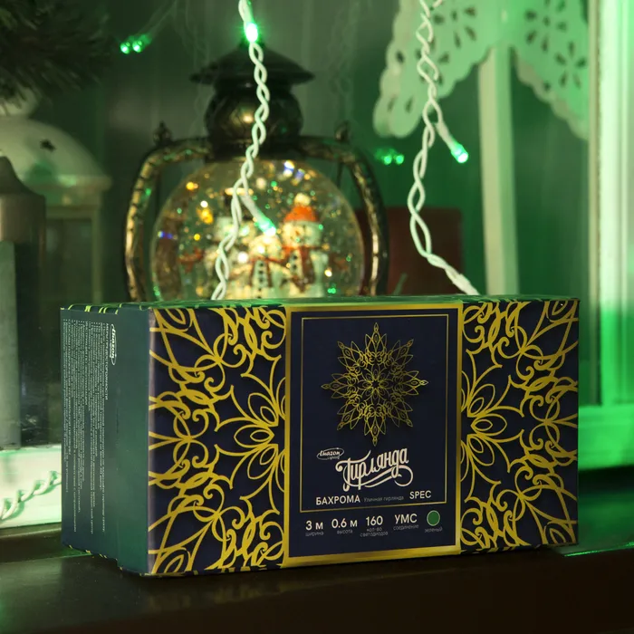 Гирлянда «Бахрома» 3 × 0.6 м, IP44, УМС, белая нить, 160 LED, свечение зелёное, мерцание белым, 220 В — Характеристики