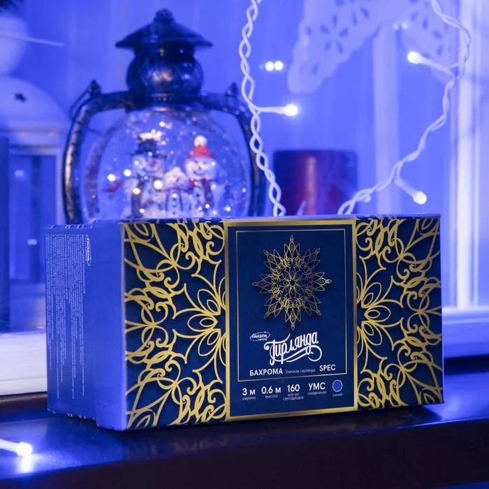 Гирлянда «Бахрома» 3 × 0.6 м, IP44, УМС, белая нить, 160 SMD-LED, свечение синее, 220 В — Характеристики