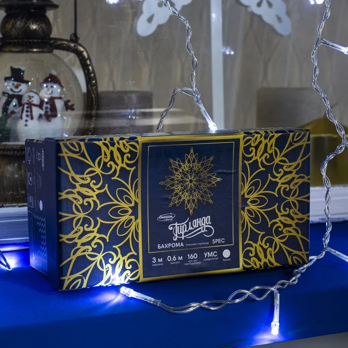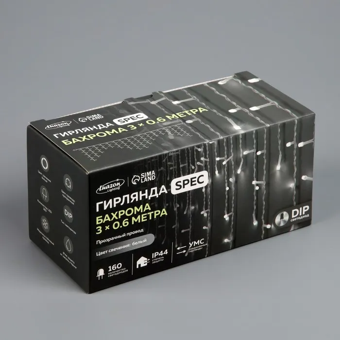 Гирлянда «Бахрома» 3 × 0.6 м, IP44, УМС, прозрачная нить, 160 LED, свечение белое, мерцание белым, 220 В — Характеристики