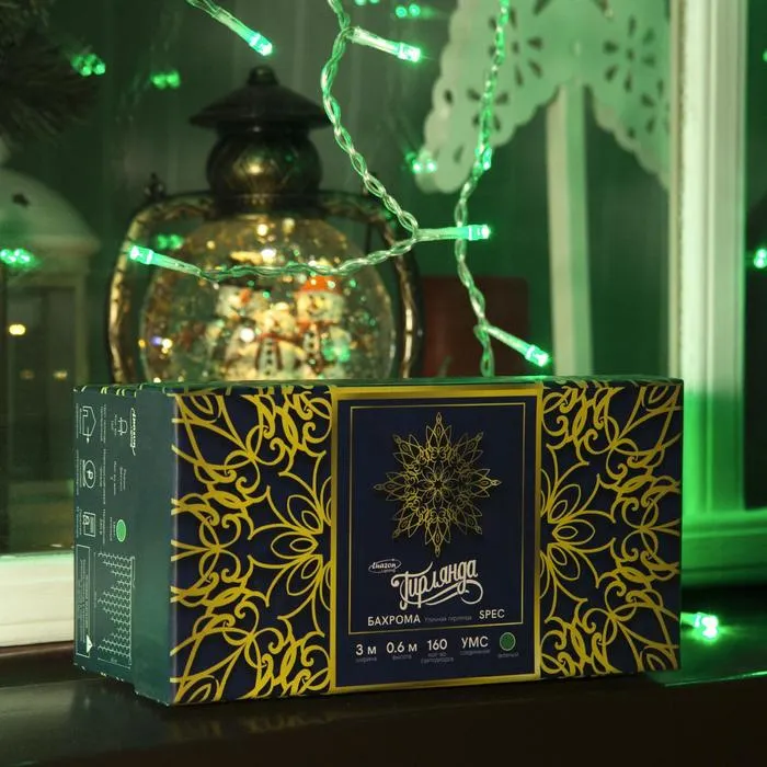 Гирлянда «Бахрома» 3 × 0.6 м, IP44, УМС, прозрачная нить, 160 LED, свечение зелёное, 220 В — Характеристики