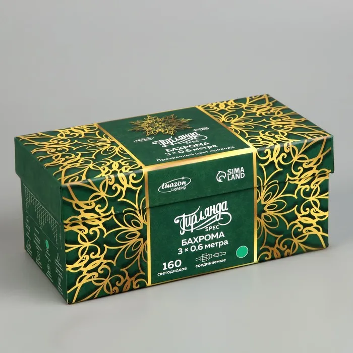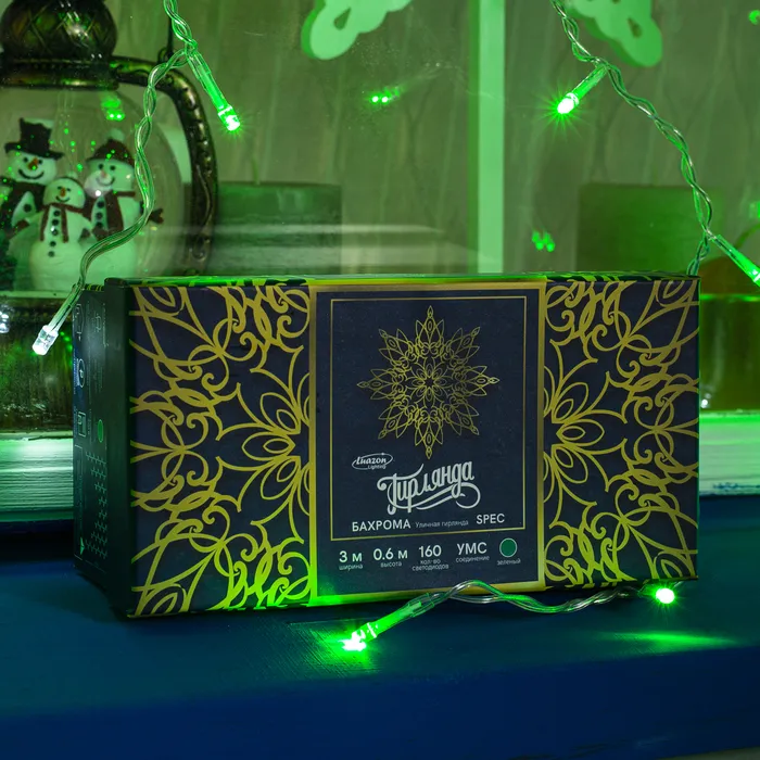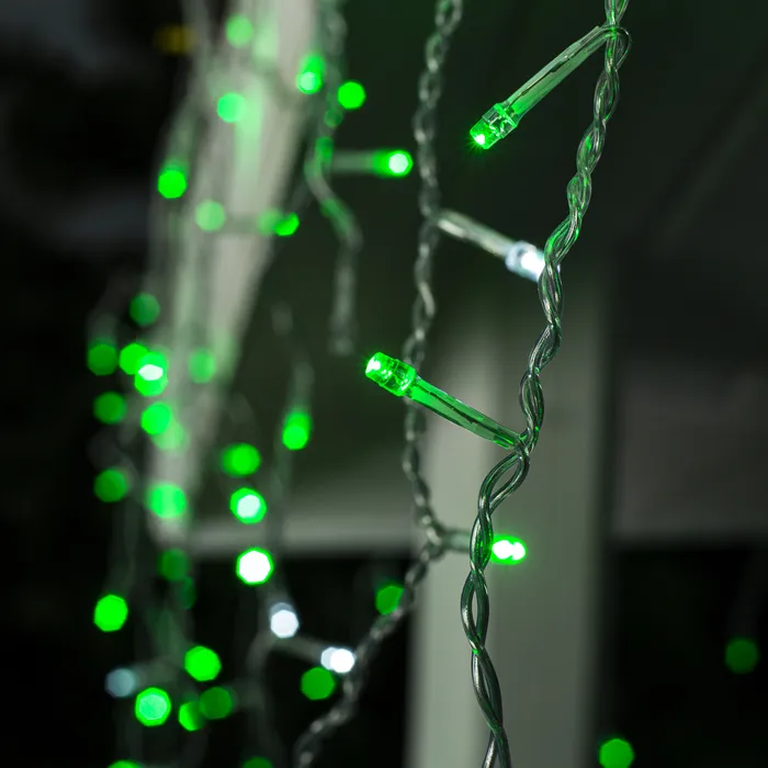 Гирлянда «Бахрома» 3 × 0.6 м, IP44, УМС, прозрачная нить, 160 LED, свечение зелёное, мерцание белым, 220 В — Характеристики
