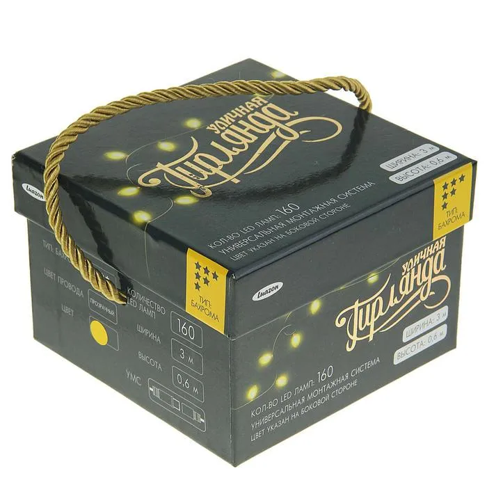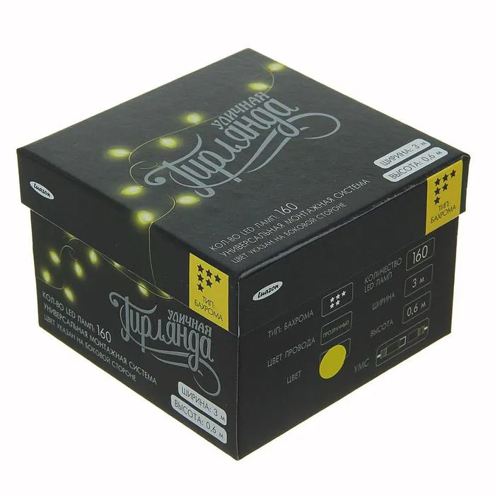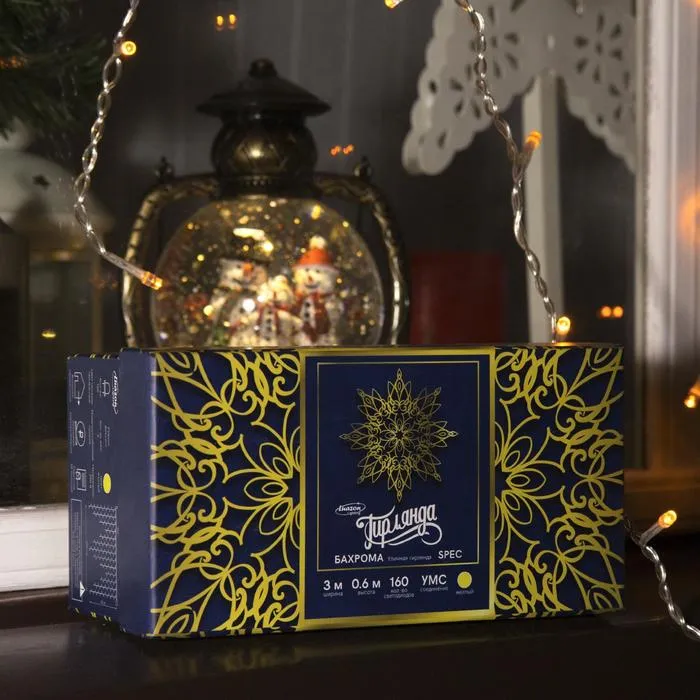 Гирлянда «Бахрома» 3 × 0.6 м, IP44, УМС, прозрачная нить, 160 LED, свечение жёлтое, 220 В — Характеристики
