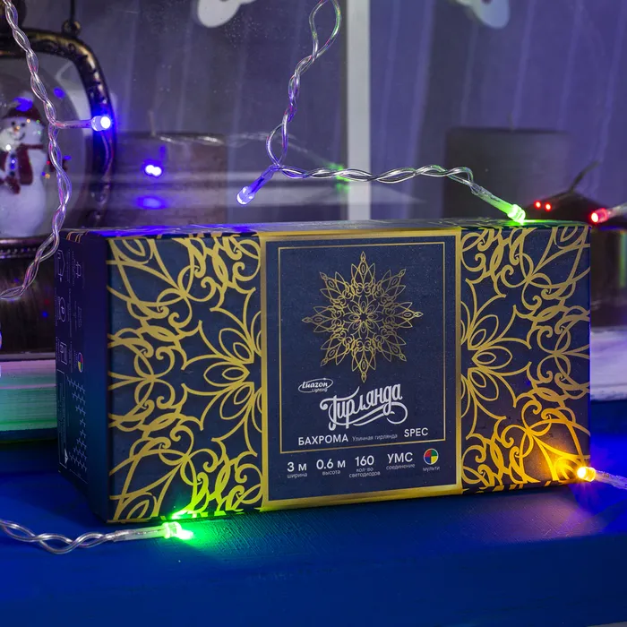 Гирлянда «Бахрома» 3 × 0.6 м, IP44, УМС, прозрачная нить, 160 SMD-LED, свечение мульти, 220 В — Характеристики