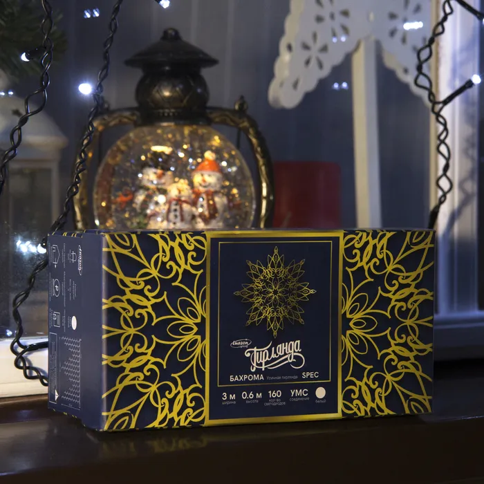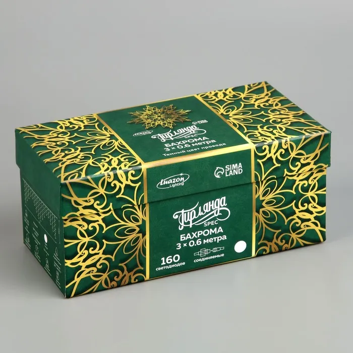 Гирлянда «Бахрома» 3 × 0.6 м, IP44, УМС, тёмная нить, 160 LED, свечение белое, мерцание белым, 220 В — Характеристики