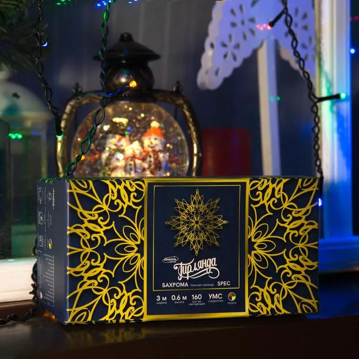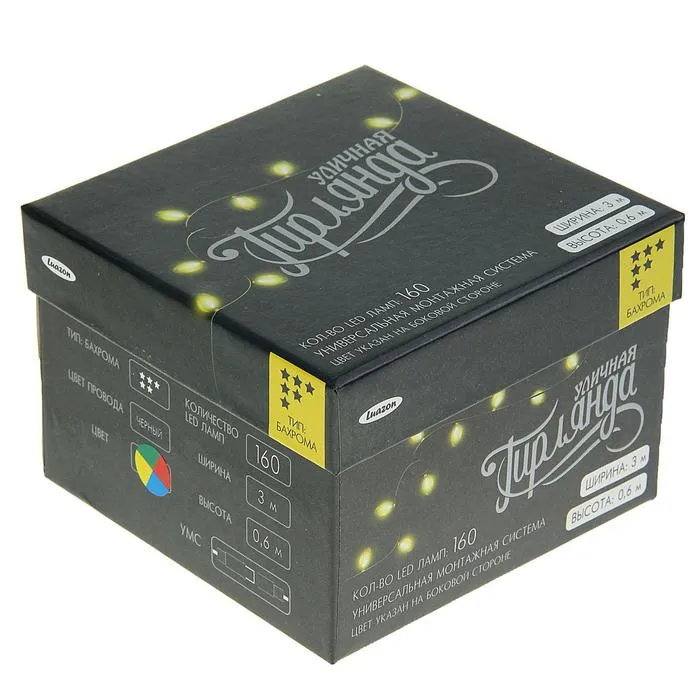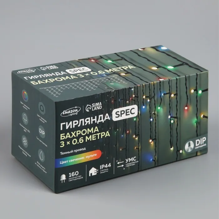 Гирлянда «Бахрома» 3 × 0.6 м, IP44, УМС, тёмная нить, 160 LED, свечение мульти, 220 В — Характеристики
