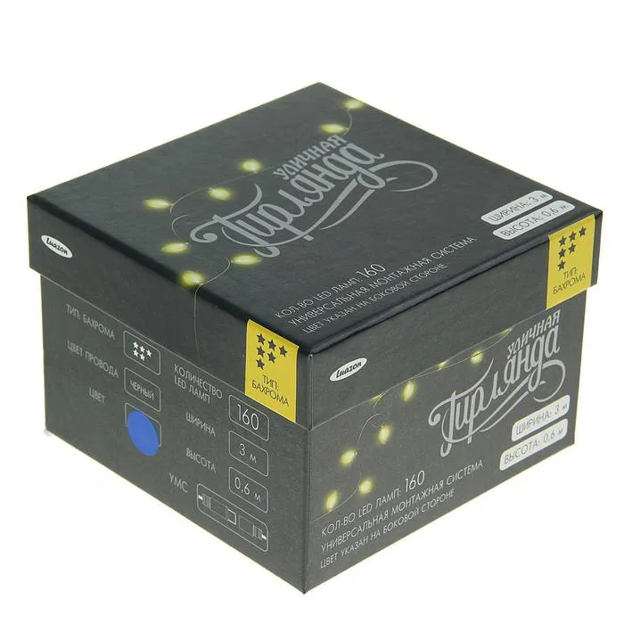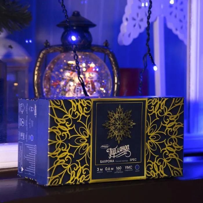 Гирлянда «Бахрома» 3 × 0.6 м, IP44, УМС, тёмная нить, 160 LED, свечение синее, 220 В — Характеристики