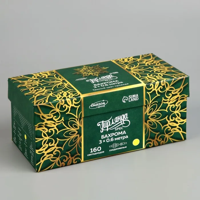 Гирлянда «Бахрома» 3 × 0.6 м, IP44, УМС, тёмная нить, 160 LED, свечение жёлтое, мерцание белым, 220 В — Характеристики