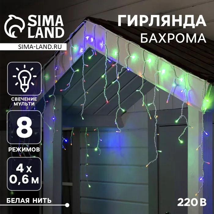 Гирлянда «Бахрома» 3 × 0.9 м, IP44, УМС, белая нить, 232 LED, свечение белое, 220 В — Характеристики
